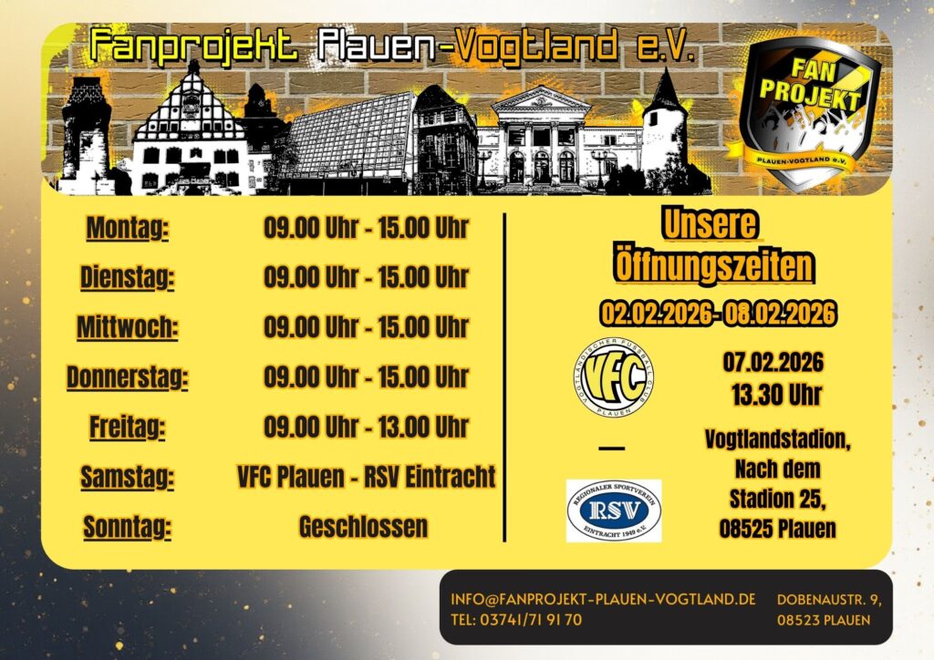 • die Fanhalle ist nach Bedarf und an Heimspieltagen geöffnet